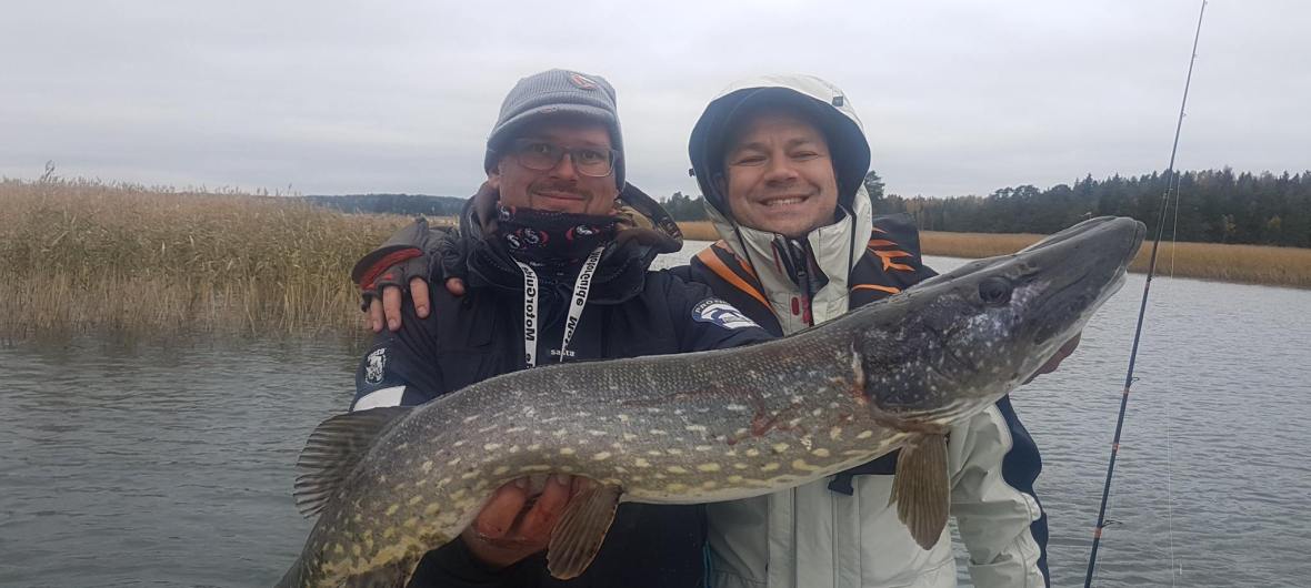 We left in the autumn morning towards the famous waters of Raseborg. Our guide Timo Narinen, (who was a super nice guy!) steered the boat towards to the first spot. The Lund Pro-V was a really spacious boat that can accommodate a guide in addition to 3 people to fishing comfortably and the fishing gear were top-notch. Only 10 minutes passed until the first pike struck! Then, during the day, we got a +20 pikes total, the largest of them was 105cm +8kg.